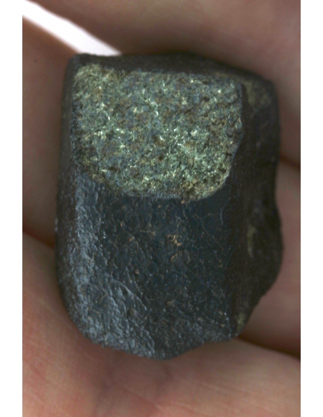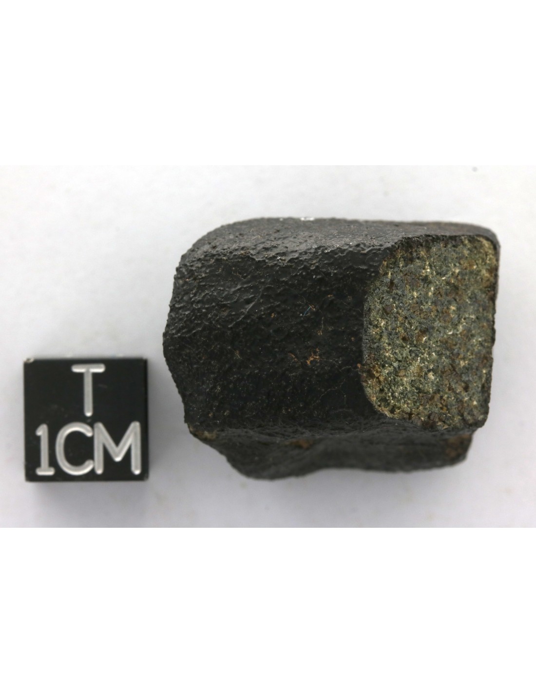 Unique Martian meteorite specimen preserving an extensive natural fusion crust, with a small sampling window exposing its internal structure. Confirmed as a Nakhlite by XRF analysis. Single known stone, discovered over ten years ago, with no additional material recovered since.