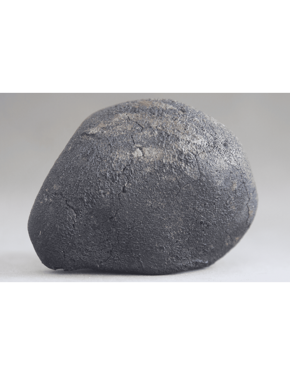 This specimen is particularly noteworthy for being a complete individual with its fusion crust fully preserved. The crust exhibits the characteristic dark, matte appearance typical of CM carbonaceous chondrites, reflecting their low iron content and volatile-rich composition. Such complete individuals are increasingly uncommon due to the inherent fragility of carbonaceous material.