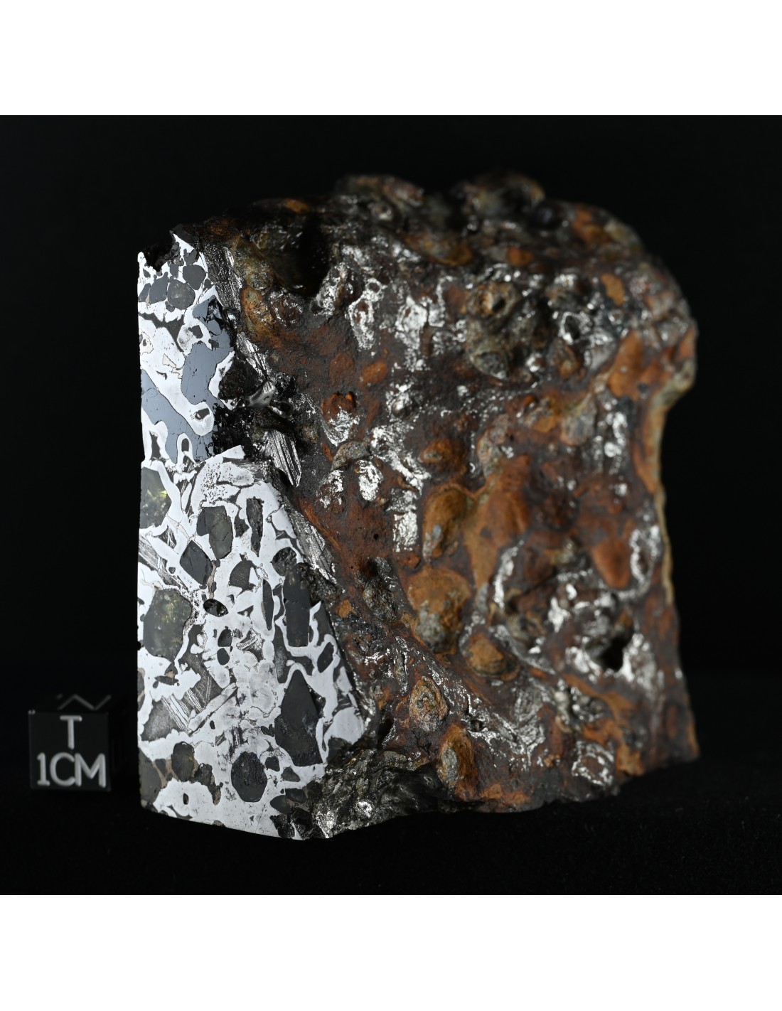 This 855 g block is particularly suited to collectors seeking a Seymchan specimen with greater sculptural presence, stronger individuality, and a more complete reading of the meteorite than a simple polished slice can offer. It is equally suitable for a refined private collection, a cabinet display, or an institutional context where both natural exterior and internal structure are valued.