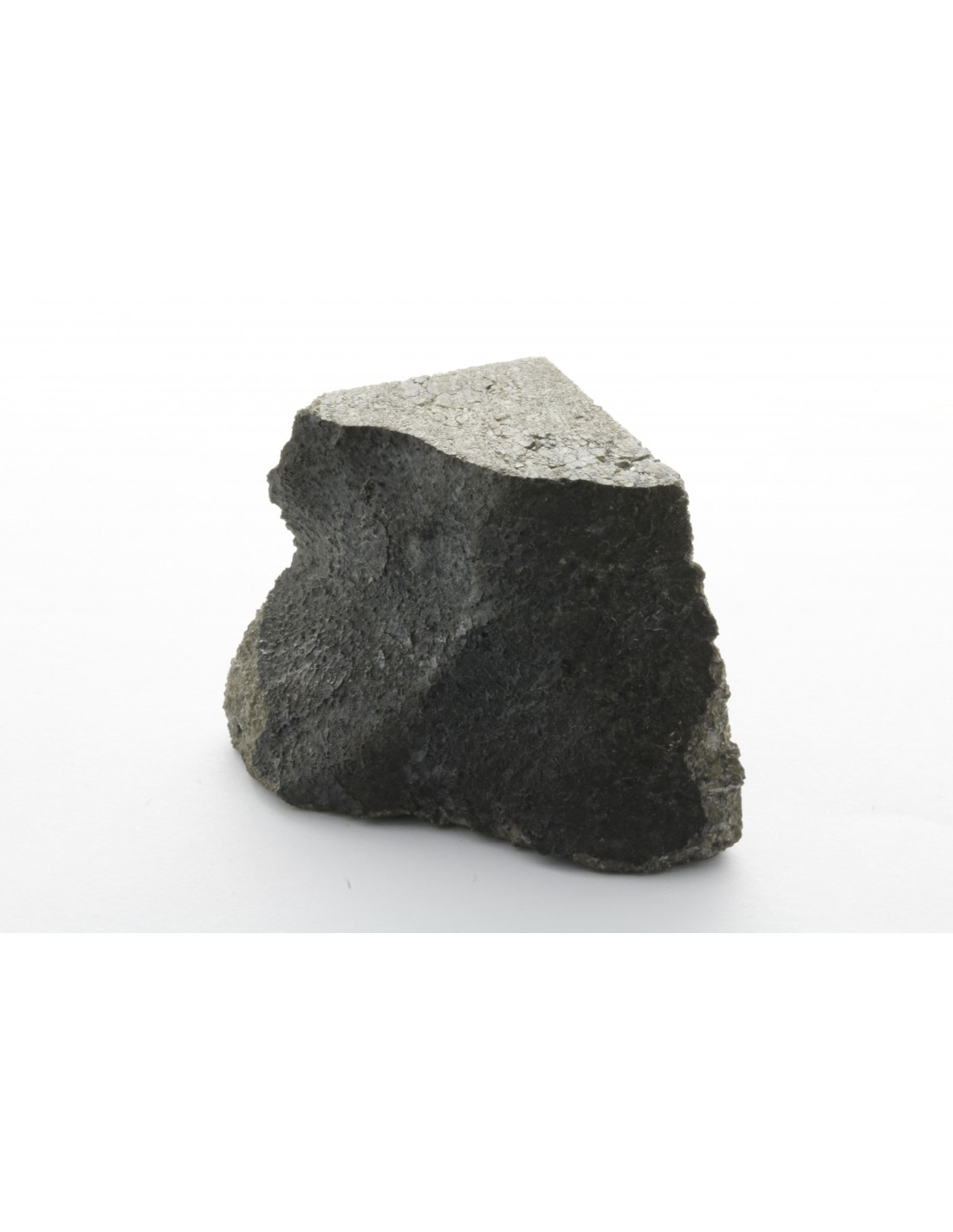 This 150.90 g end cut from the Martian meteorite Zagami offers a rare opportunity to observe both the external and internal characteristics of a rock formed on Mars and delivered naturally to Earth.