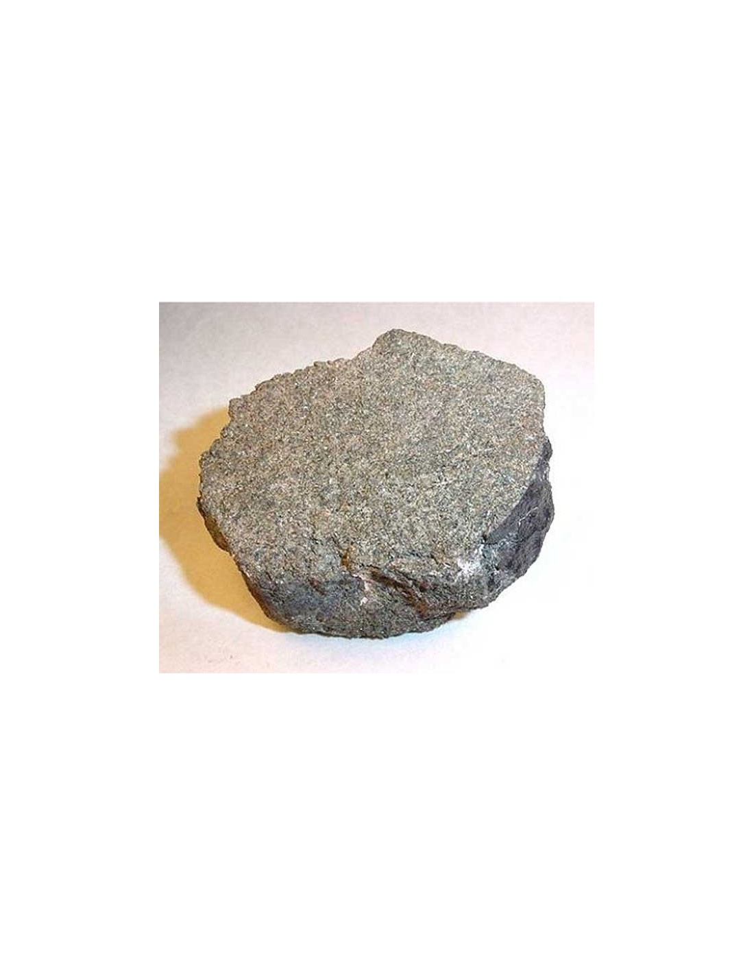 Classification and mineralogy (A. Irving and S. Kuehner, UWS): a friable, dark green rock with minor orange-brown alteration products that probably are of pre-terrestrial origin. Composed mainly of subhedral, olive-green, complexly-zoned subcalcic augite (Fs22Wo39) with subordinate yellow olivine (Fa64), orthopyroxene (Fs49Wo4), interstitial plagioclase (Ab61Or4 containing 0.1 wt.% SrO, and exhibiting normal birefringence), titanomagnetite, chlorapatite and pyrrhotite. The overall texture is that of a hypabyssal, adcumulate igneous rock, and the apparent crystallization sequence is olivine, orthopyroxene, titanomagnetite, augite, apatite, plagioclase.