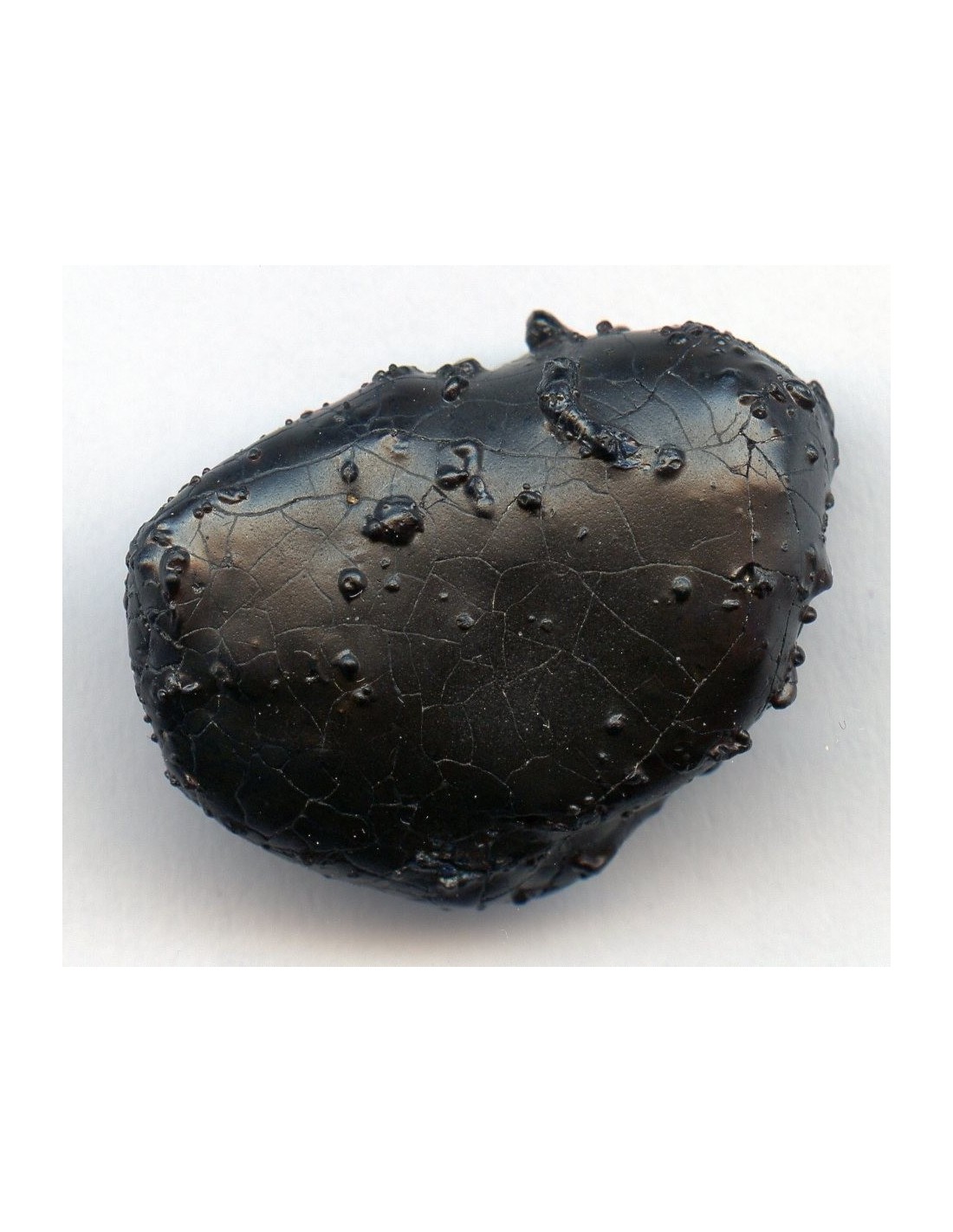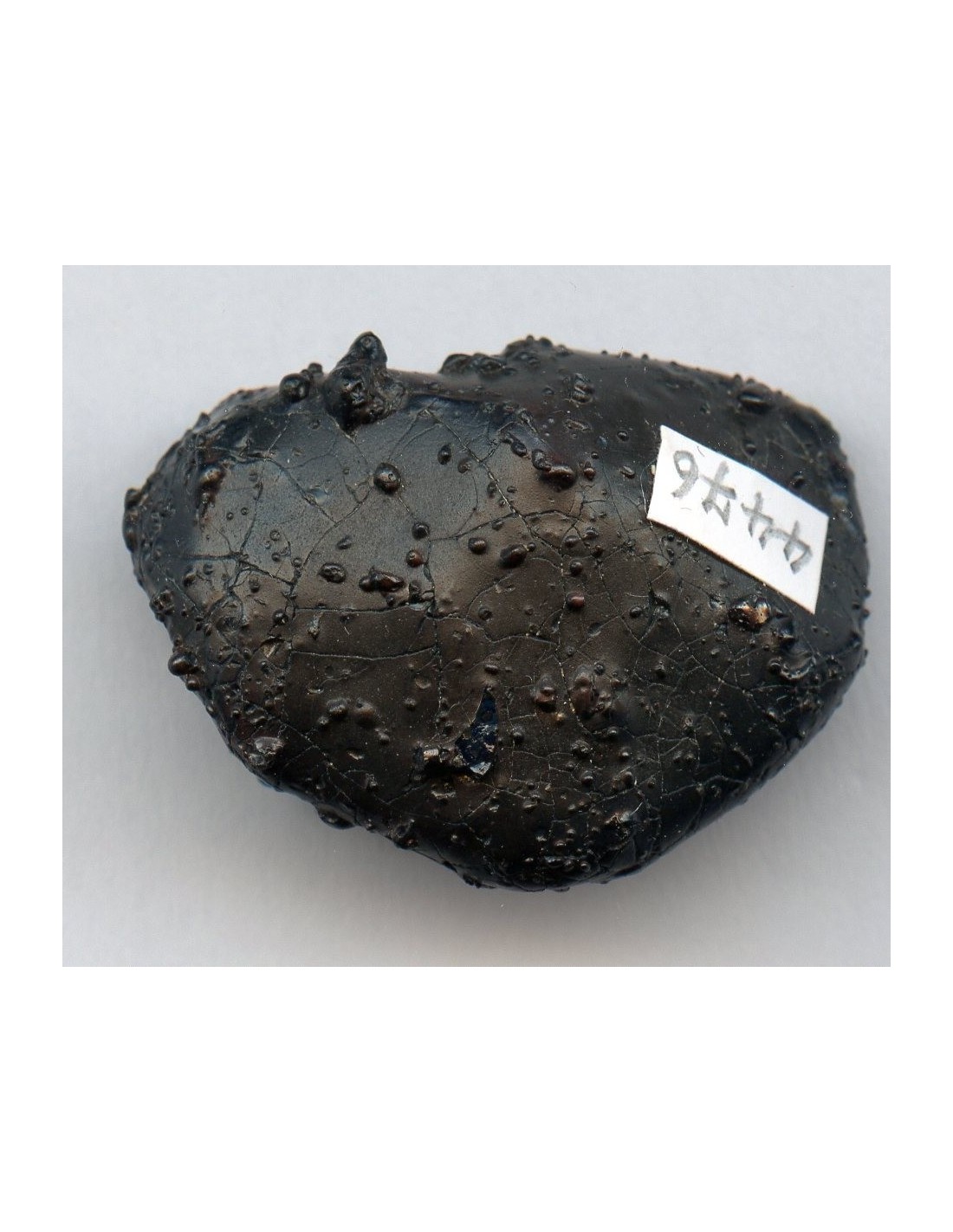 The Wabar pearls (or Wabar button following the shape) is a black glass splattered from the impact surrounds the crater rims in place known the Wabar meteorite crater. These glass droplets, known as "Wabar pearls", are composed of 10% of microscopic particles of iron-nickel (from the giant iron meteorite) and more or less 90% of local sand.